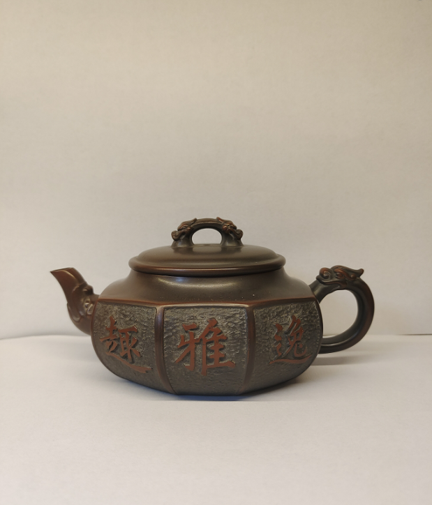 据悉,大乌从事陶艺研究与制作长达40年,擅长在坭兴陶上雕刻书画,其金石篆刻及楷书、行草等书法技艺造诣深厚。他的作品注重细节表达,巧妙利用坭兴陶的古铜色肌理,通过传统造型将国学文化与陶艺技法完美结合,赋予作品独特的艺术感染力。