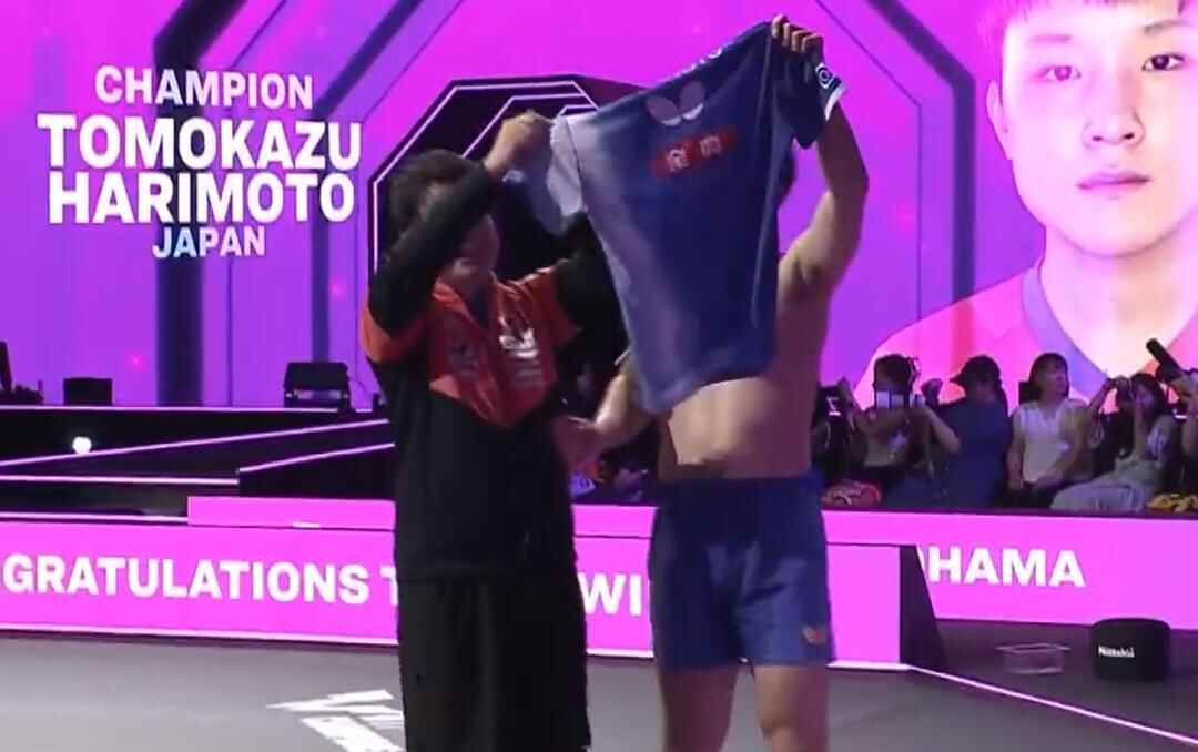 8月11日,WTT横滨冠军赛男单决赛,王楚钦2-4不敌张本智和。赛后,张本智和与王皓教练握手,脱衣庆祝并将球衣高高举起。