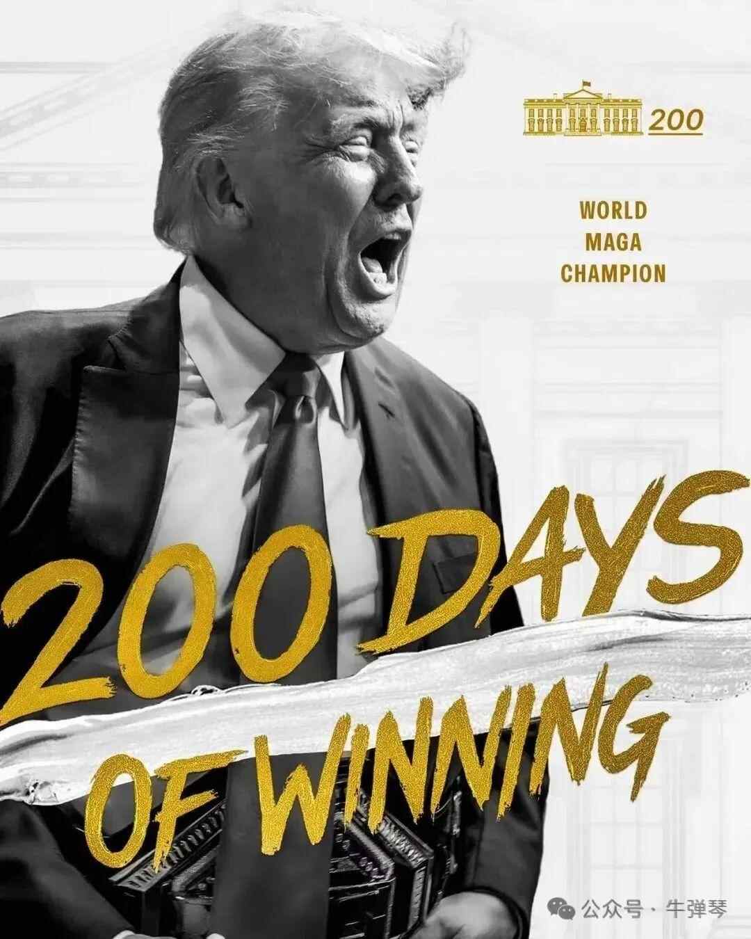 算起来,特朗普2.0已整整两百天了,白宫的海报,就是特朗普总是赢。