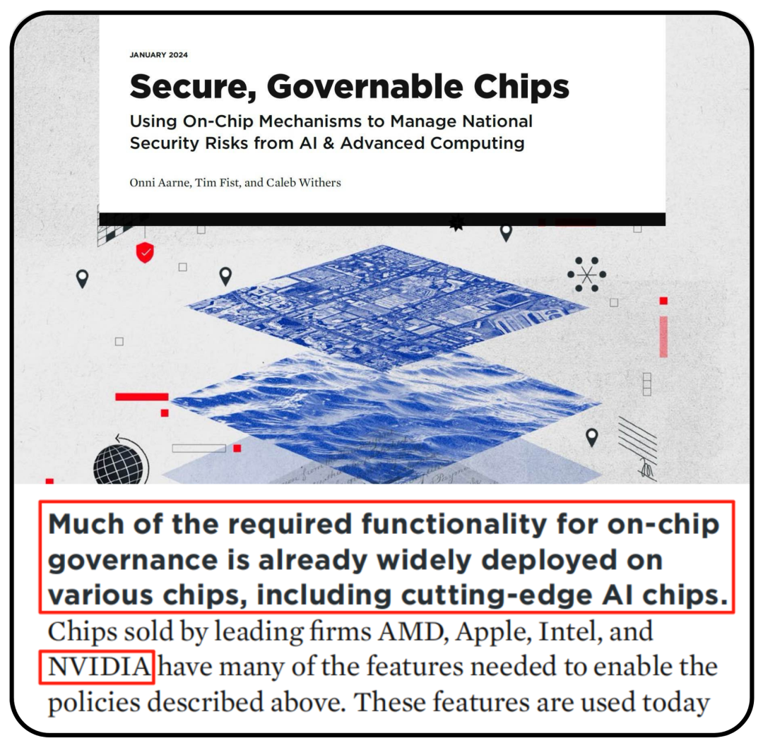 在一份详细介绍“片上治理机制”的报告中提到,英伟达的人工智能芯片其实已经广泛部署了片上治理所需的大部分功能,只不过有些还没有激活而已。