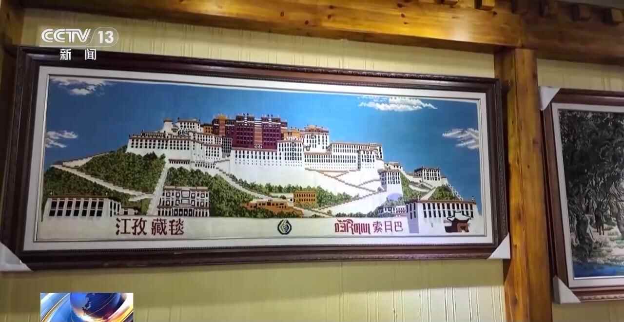 总台央视记者 申杨:在这个藏毯陈列馆,可以看到藏毯的前世今生。20世纪30年代到2010年时期藏毯的样式,从颜色、造型、工艺上来讲,变化并不大,真正发生变化是在2014年,藏毯的编织工艺有了新的突破。这幅布达拉宫立体编织图,它是根据照片编织出来的,这种立体藏毯是怎么织出来的?