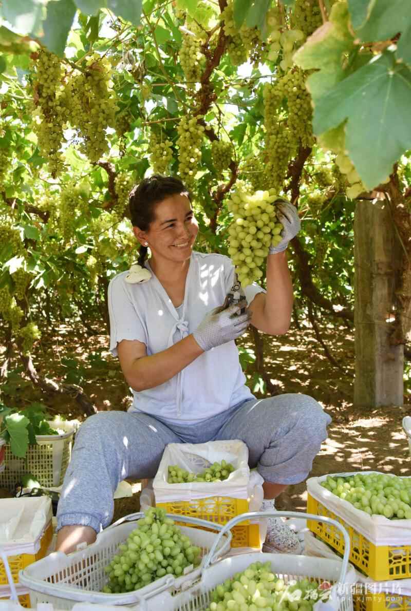 进入7月后,吐鲁番的葡萄陆续成熟,种植户在采摘成熟的葡萄。刘健摄