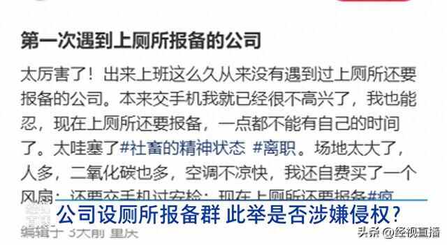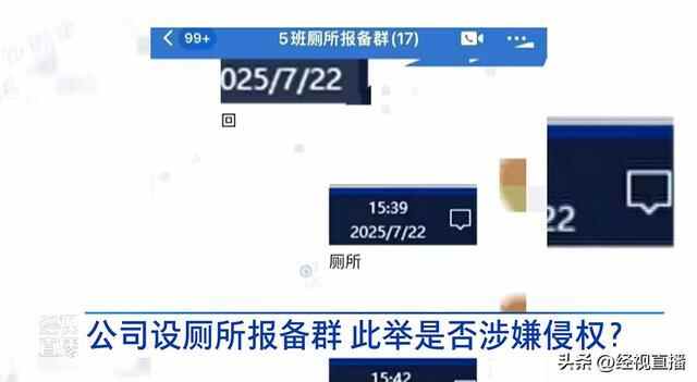 近日,一则关于公司设立厕所报备群,要求员工上厕所及返回时在群内发时间截图的消息引发关注。