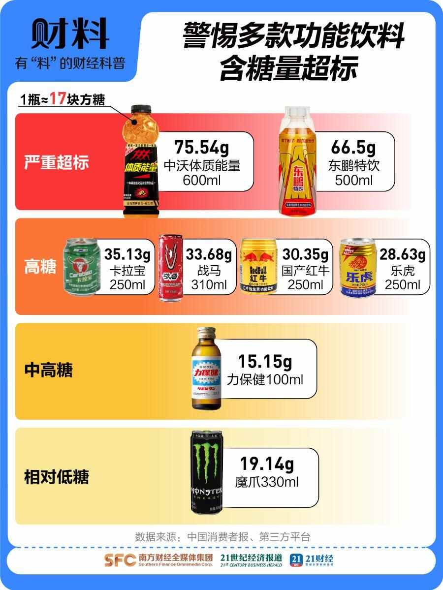 不过,你的“提神搭子”或是隐藏的“健康杀手”,1瓶600毫升的体质能量含糖量高达75.54克,相当于你一次吃下17块方糖——在熬夜喝功能饮料时,你可能在悄悄变胖。