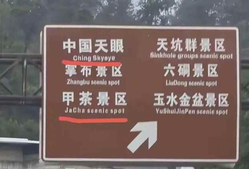 “甲茶景区”的拼音“Jia”也被错写成“Ja”。