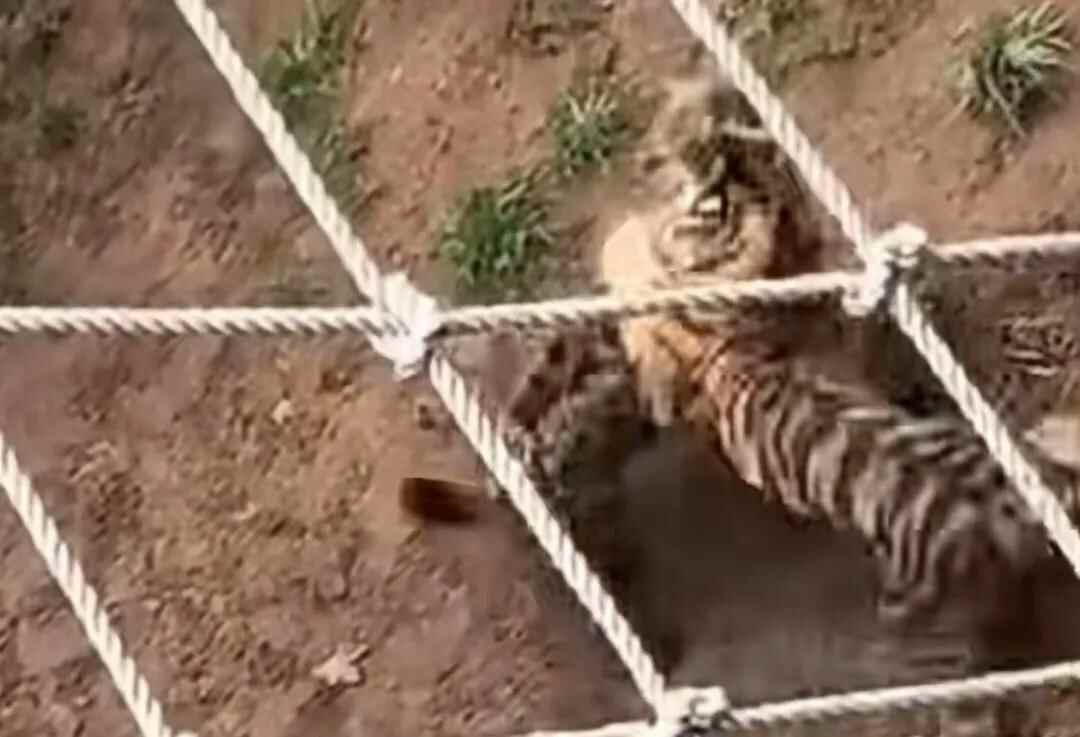 西霞口神雕山野生动物世界工作人员回应记者称,两只动物都是比较小的,几乎是没啥攻击力的,只是在玩,以后会分开养。