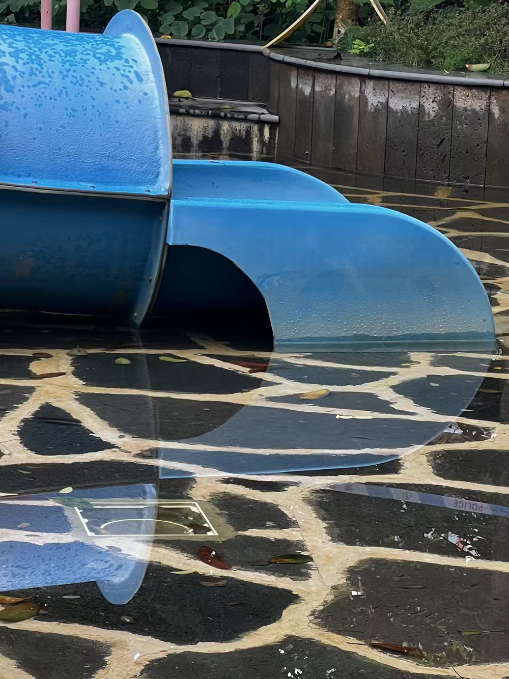 妈妈发现,悦悦身上那件颜色鲜艳的碎花连体泳衣,正隐约出现在两个小女孩身旁的水下 —— 悦悦的身体呈后仰状态沉在水里。起初,妈妈以为孩子只是不小心滑倒了,便立刻下水想扶她起来,可当她伸手去拉时,却发现根本拉不动。仔细一看才惊觉,悦悦的左腿深深陷进了一个水管里。