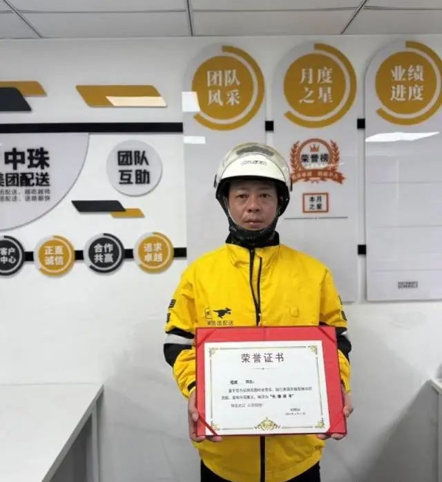 程斌被公司授予“先锋骑手”称号