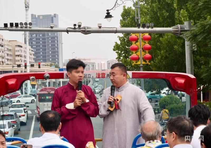 天津首台双层“相声巴士”(央广网发 王艺晗 摄)