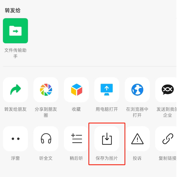 选中语句点 「转发」,连句子带文章来源都在图里,分享给朋友也不像纯文字那样被刷走。当然,如果你觉得一篇文章的每一个字都难以取舍,也可以保存整篇文章到相册,随时看。点击文章右上角「…」-保存为图片。