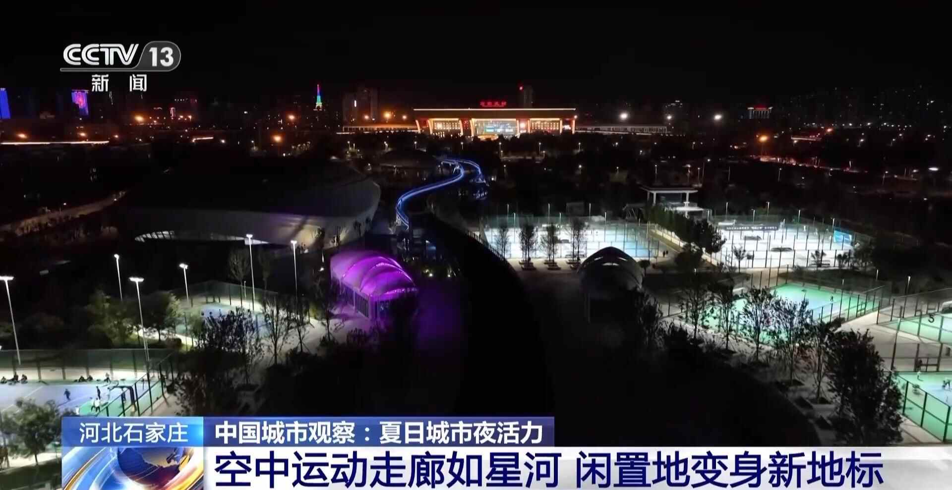 旧貌新颜,活力迸发。在河北石家庄市中心,一座由闲置空地蜕变而来的中央绿色体育公园正焕发着勃勃生机,自2023年改造后投入使用,每当夜幕降临,一条超千米的“空中运动走廊”,便化身璀璨银河。