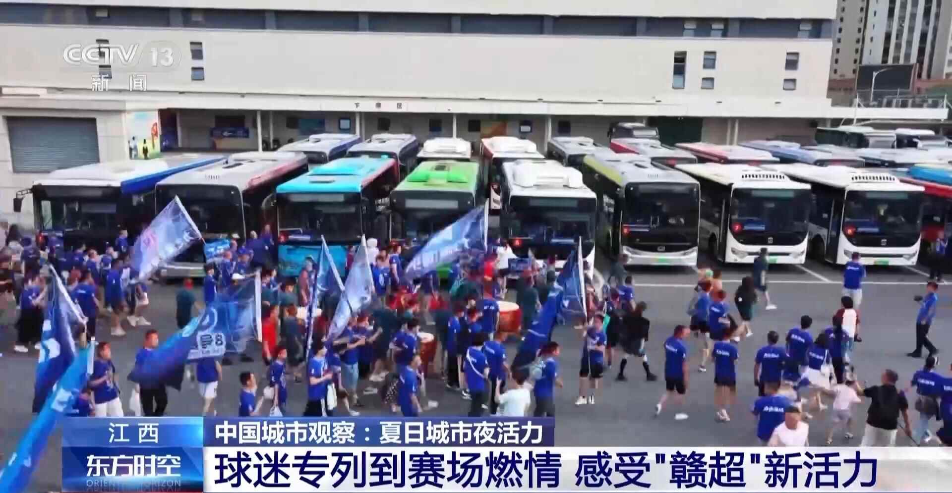 而车站外,25辆贴着“赣超球迷接送用车”的大巴车格外醒目。