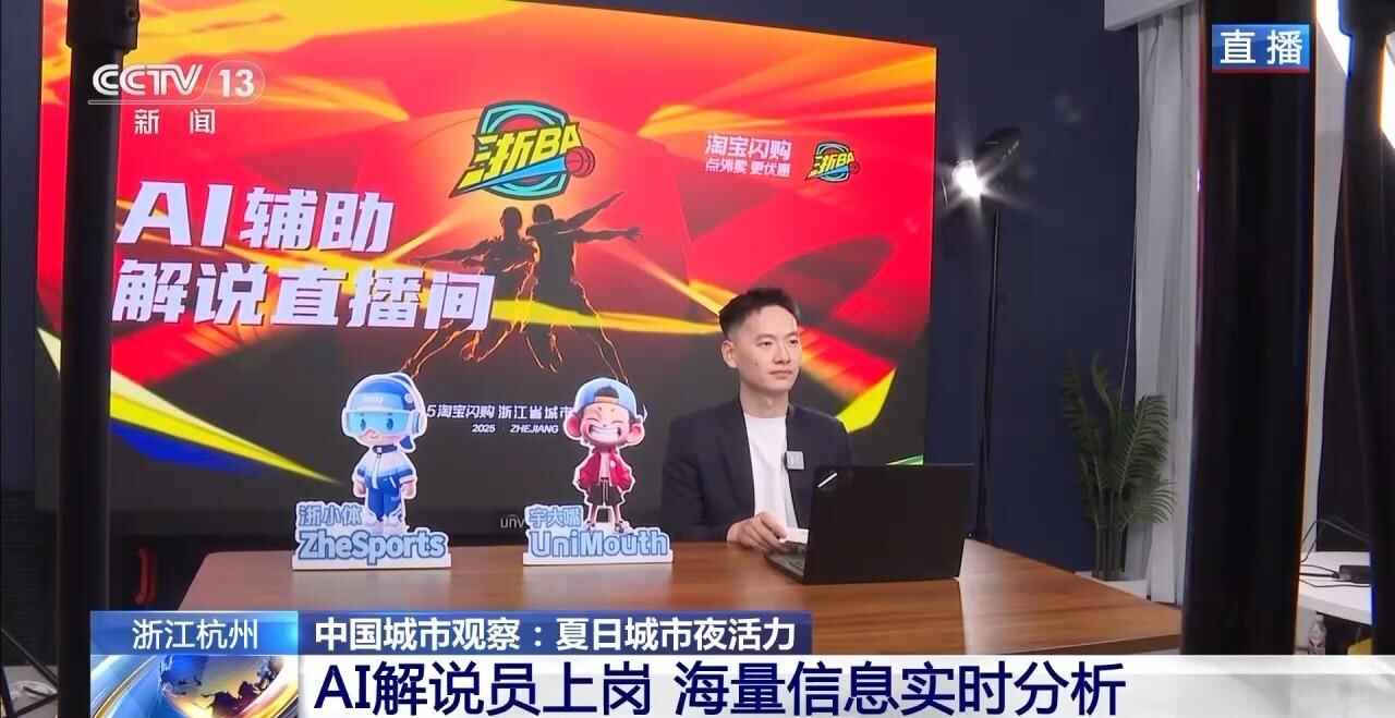 除了球员的精彩表现,科技元素也成为亮点。两位AI解说员“浙小体”和“宇大嘴”,基于AI和大数据技术,能实时分析比赛数据、预测胜负概率,同时还能补充现场解说的信息。