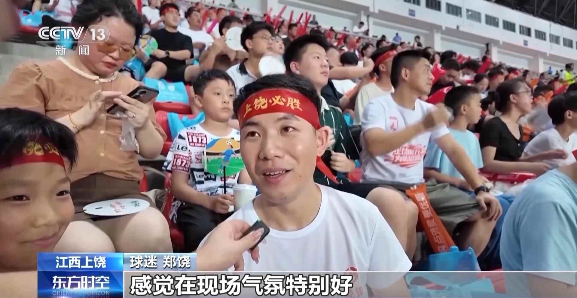 江西上饶球迷 郑饶:大家可以亲眼在现场看到球员在赛场上拼搏,我感觉现场气氛特别好。