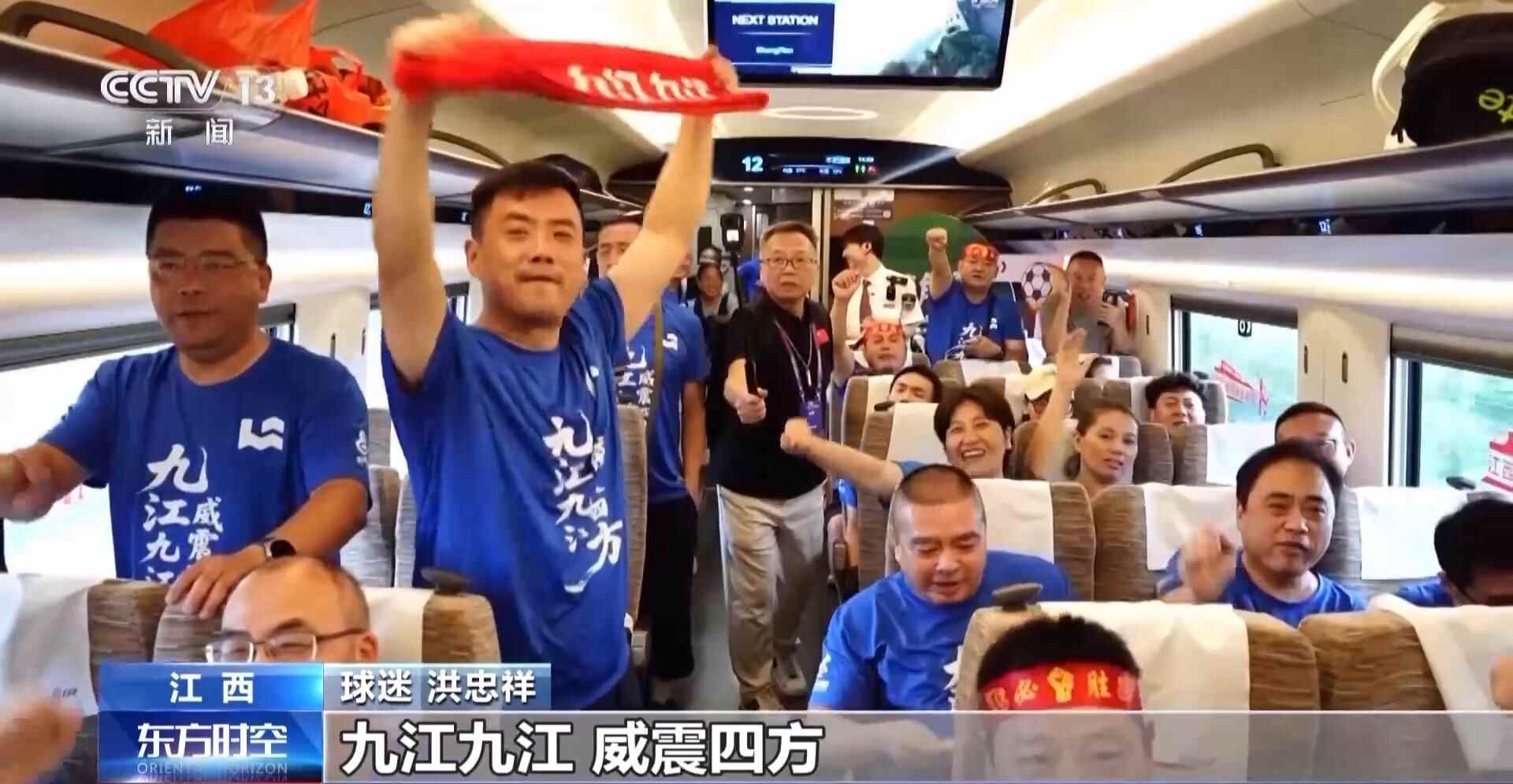 这趟列车是今年江西开行的第二趟“赣超”专列,堪称移动的球迷俱乐部。刚上车,列车上准备的助威包就引发大家一阵欢呼,荧光棒、小喇叭、润喉糖,助威装备一应俱全。载着1100多名球迷的车厢瞬间变成欢乐的海洋,当被问及支持哪支球队时,球迷的答案整齐划一。