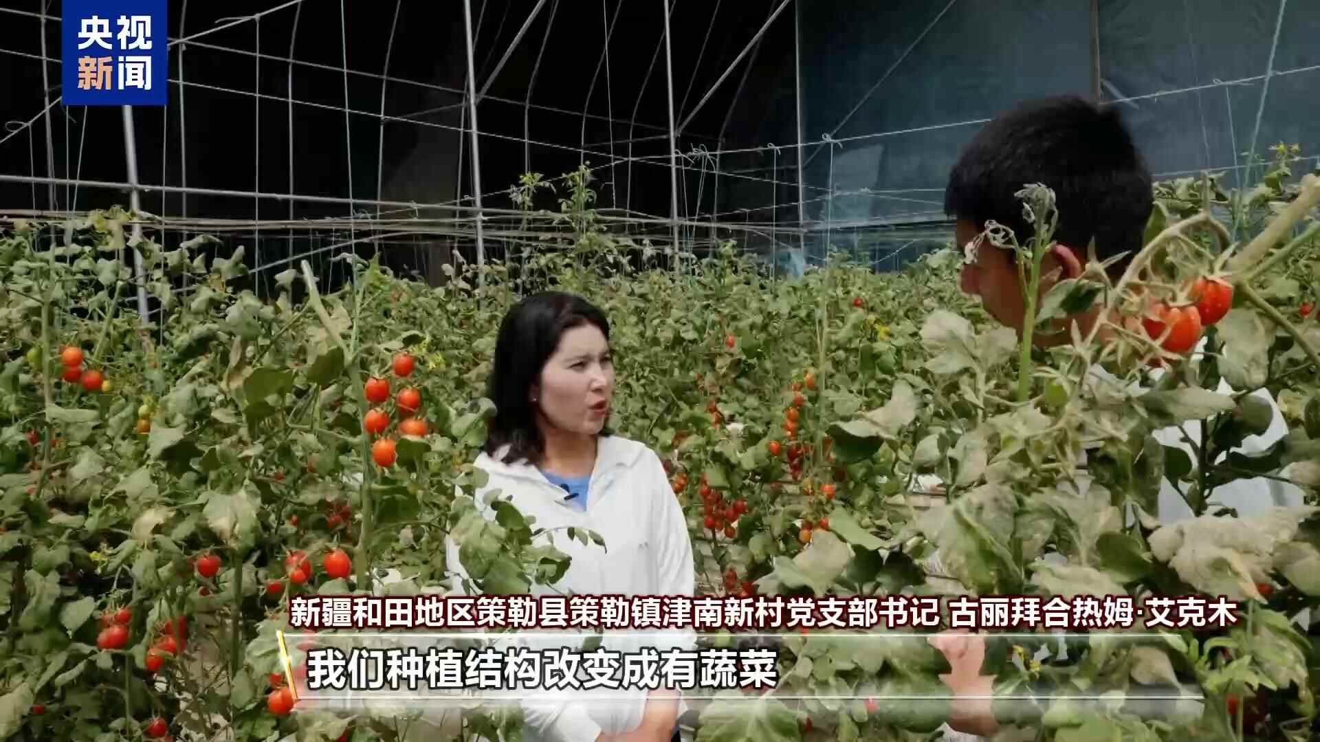 新疆和田策勒县策勒镇津南新村党支部书记 古丽拜合热姆·艾克木:我们种植结构改变成有蔬菜、林果、花卉、中药材的多元化种植模式。目前,村民人均收入已经超过2万元,群众的生活条件已经越来越好了。