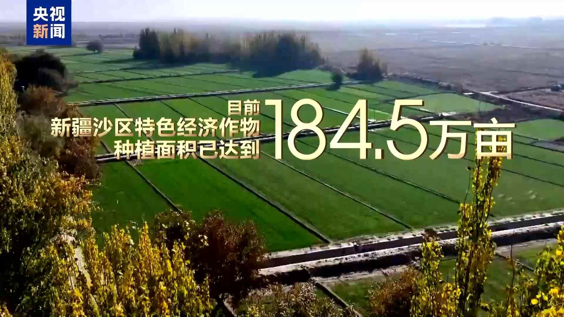 在整个新疆,沙区特色经济作物的种植面积目前已达到184.5万亩,沙产业年产值达到43.7亿元。从绿进沙退到点沙成金,人们在曾经寸草不生的沙漠里,正在书写绿富同兴的崭新篇章。