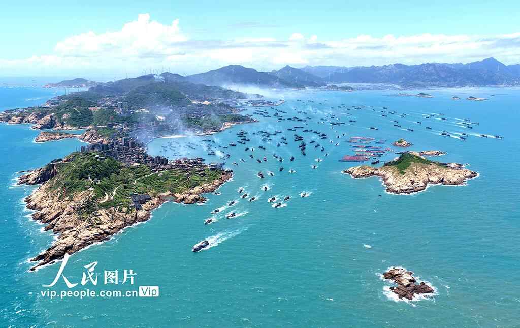2025年8月16日,福建省部分海域结束为期三个多月的伏季休渔期,停泊在福建省福州市连江县苔菉国家中心渔港的渔船扬帆出海,开启新一轮捕捞作业。王旺旺摄(人民图片网)