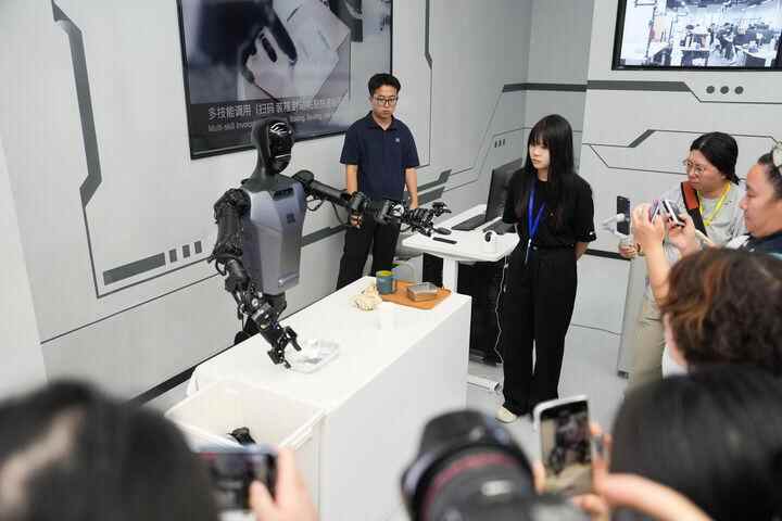 盛会之外,人们也能与机器人不时“邂逅”。推开机器人主题餐厅的大门,仿生人形机器人迎客;4000平方米的具身智能机器人4S店,汇聚全国40余家机器人企业的100余款机器人产品,提供销售、展示、维修等一站式解决方案。
