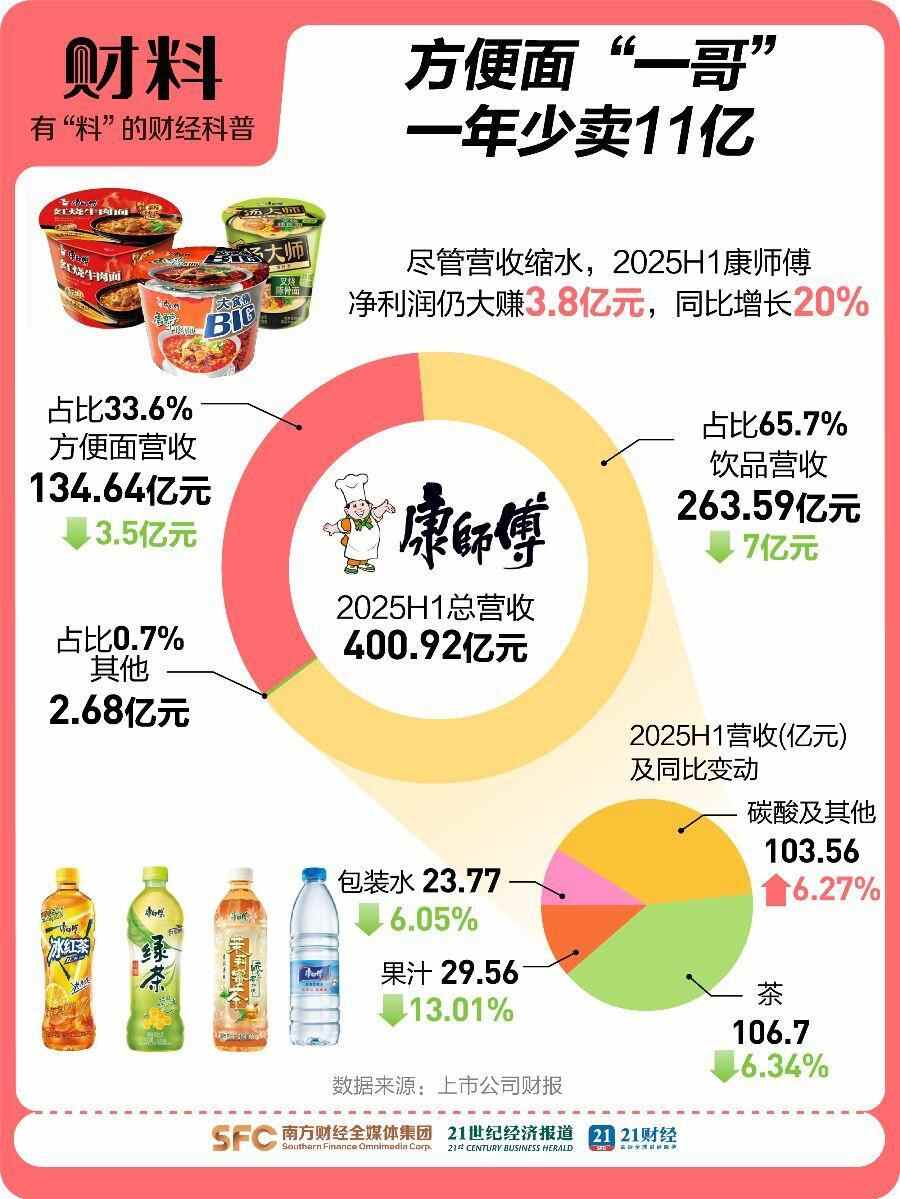 行业巨头的日子同样不好过。左手红烧牛肉面,右手冰红茶,方便面“一哥”康师傅曾手握两大“摇钱树”,如今却逐渐被年轻人抛弃,营收双双失利。