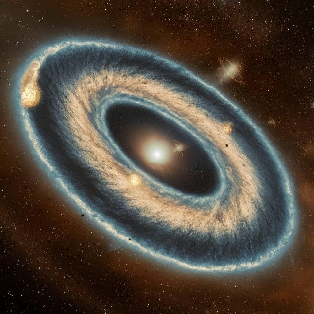 那是在太阳系形成之初,一团由气体和尘埃组成的原始星云在引力作用下开始塌缩,形成了太阳,并在其周围留下了一个巨大的原行星盘。这个盘中的物质不断冷却、碰撞、聚集,而富钙铝包裹体(CAIs)就是最早凝结出的固体颗粒。这些CAIs常被视为整个太阳系(包括地球)形成历史的“零点”。虽然CAIs不等于地球,但可以看作组成地球物质的最早固态前身,是地球“潜在存在”的时间起点。所以,从宇宙层面的视角来看,45.67 亿年前可以被视为太阳系的初始时刻,地球尚未成形,却已经具备存在的潜力。