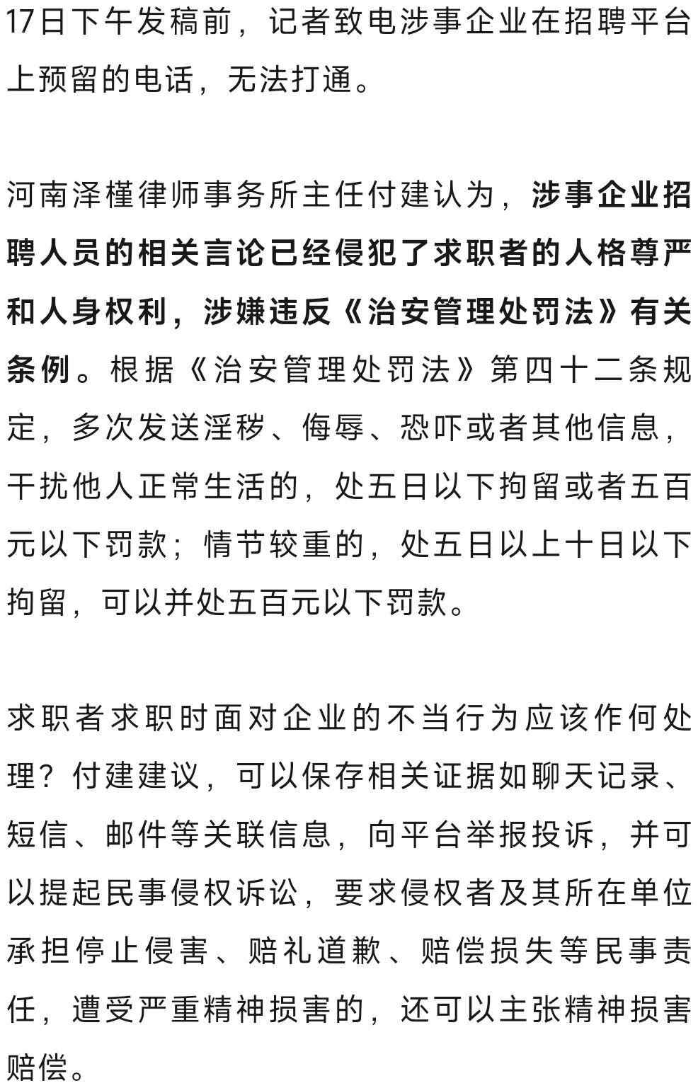 8月16日,广东有网友在社交平台发帖称,她在应聘佛山一服装公司时提出“受不了单休”遭遇招聘人员的言语侮辱。