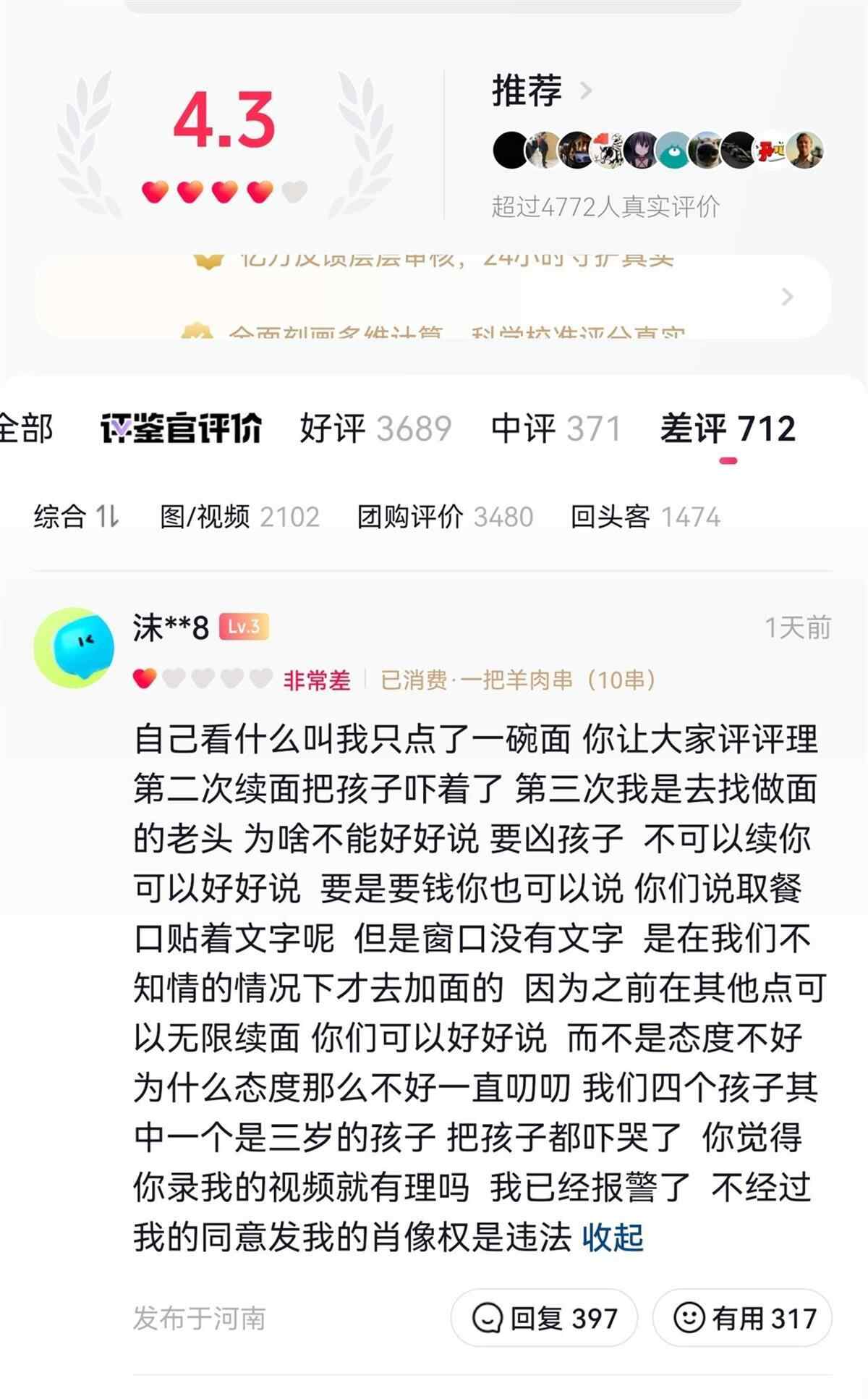 据极目新闻此前报道,涉事餐馆老板霍先生称,13日三名成年女子带着四名儿童(共7人)到店消费。他们点了13元的饸饹面、18元的涮毛肚、两份凉菜以及一份15.8元的团购羊肉串,账单总额70余元。用餐过程中,几个大人分别为同行的孩子免费续面两次。