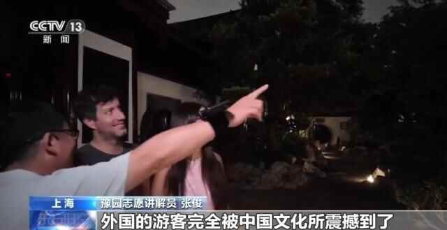 豫园志愿讲解员 张俊:确切来说这是豫园历史上的第一次夜游活动的开放。入园的游客最多的反应就是“哇”,外国的游客完全被中国文化所震撼到了,很多人说的第一个字是“unbelievable”(难以置信),第二个是“out of imagination”(超乎想象)。