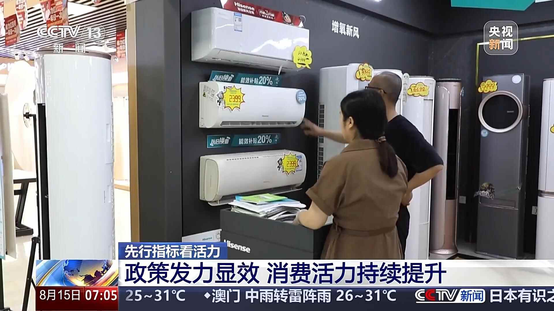 家电消费持续高涨,7月重点品类家电网络零售额同比增长36.7%,较上月加快18.8个百分点,其中空调类增速最快。