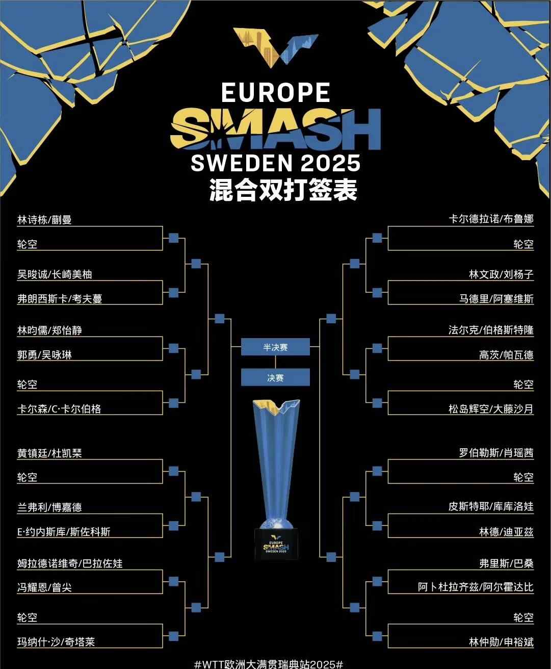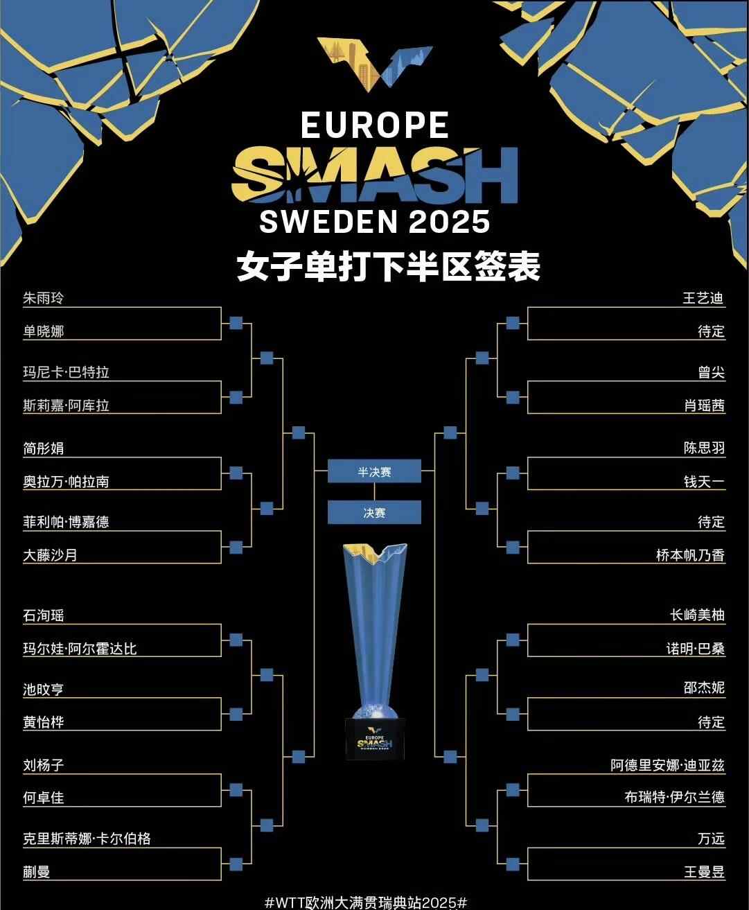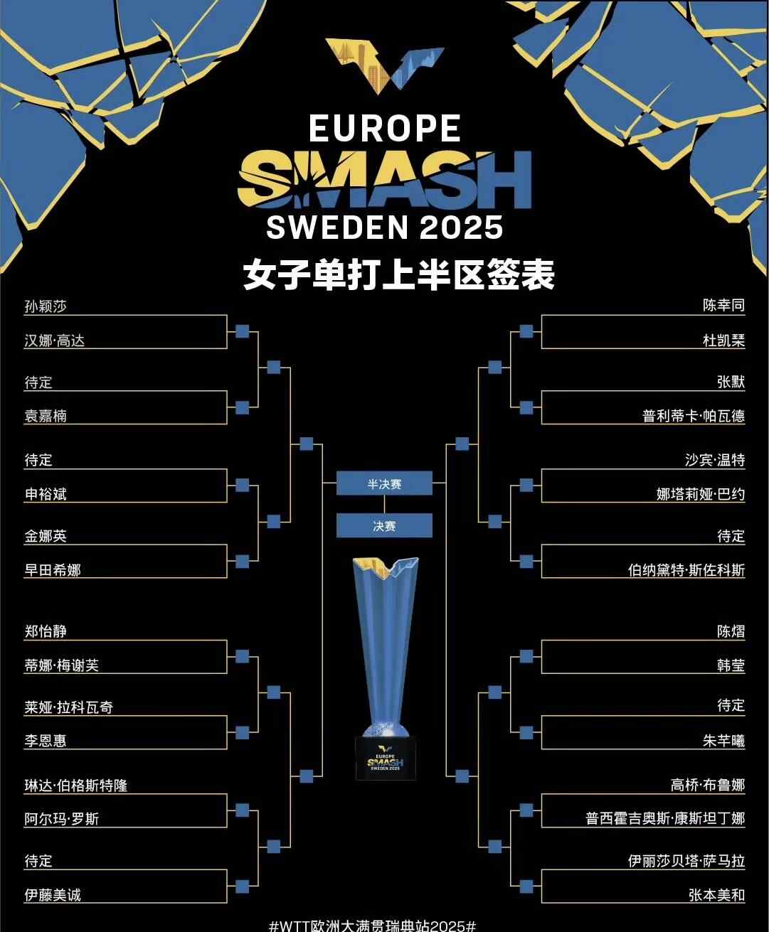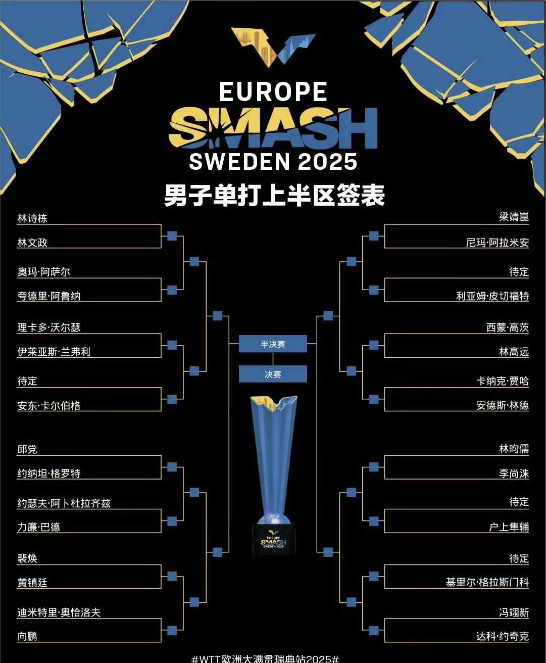 北京时间8月16日,2025年世乒联(WTT)欧洲大满贯瑞典站抽签结束。