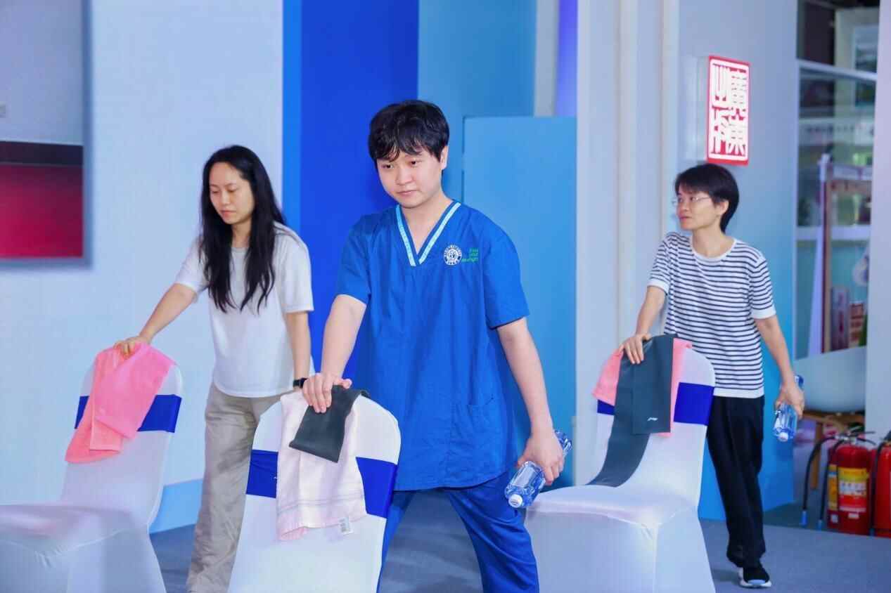 姜丽团队成员之一、南方医科大学第三附属医院康复医学科治疗师吴海申、蔡洋还带领观众实操了书中的运动训练方法。