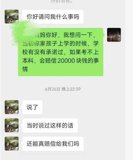 反映人:3年前承诺“不达本科线退2万” 如今不履行