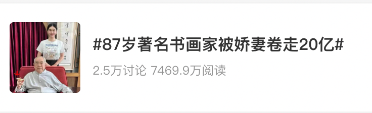 8月16日,87岁的中国当代书画大家范曾相关传闻登上微博热搜。