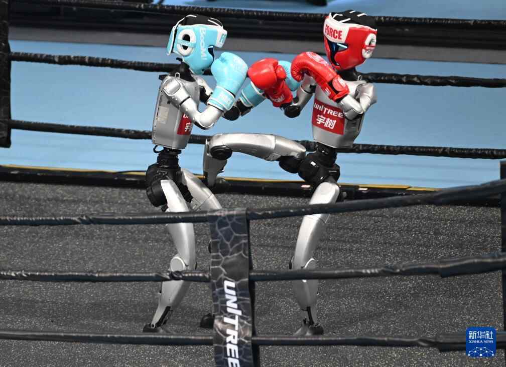 8月14日,机器人在开幕式上展示自由搏击。新华社记者 张晨霖 摄