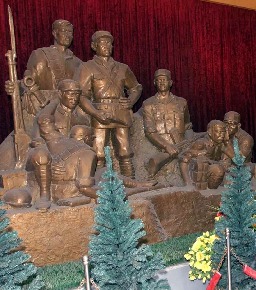 刘老庄烈士陵园纪念馆内的雕像。新华社发