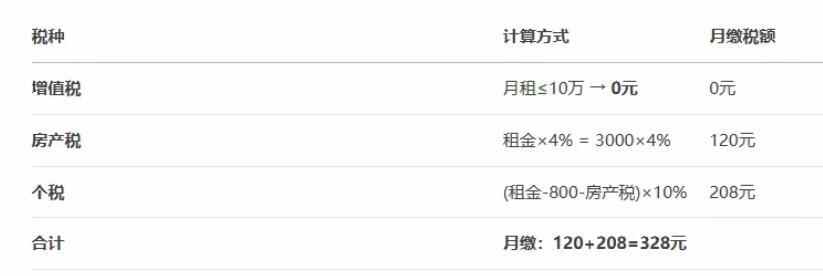 租金收入要纳税,房东未来要交多少税呢?以一套月租3000元的房子为例,大概要缴328元,税率约为10.9%。