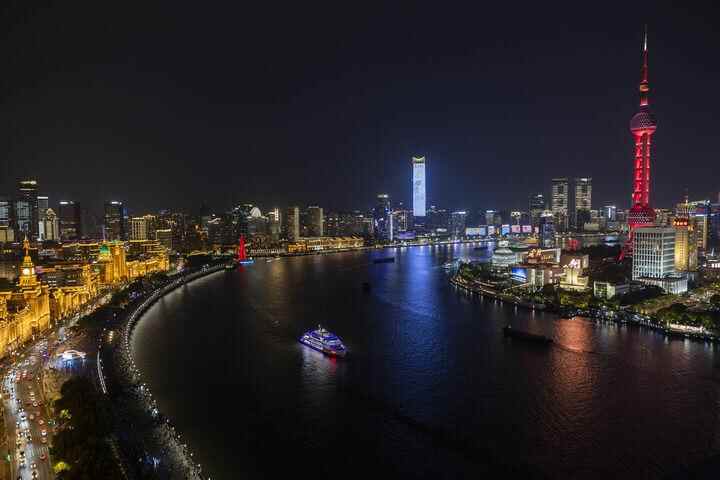 上海陆家嘴、外滩、北外滩夜景(2025年4月30日摄)。新华社记者 王翔 摄