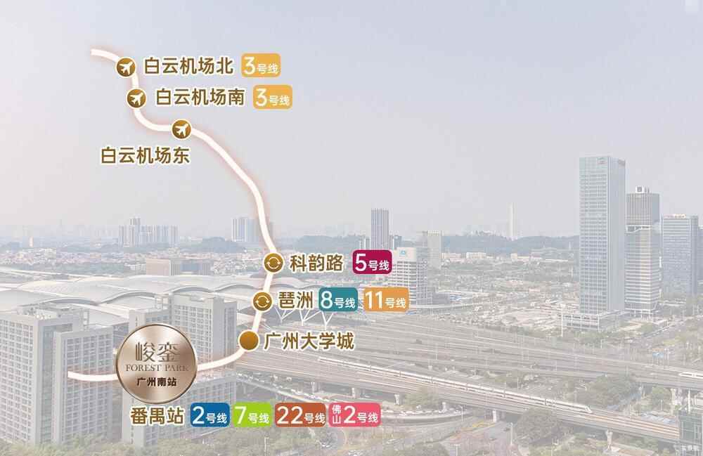 对峻銮业主而言,交通优势直接转化为生活半径的自由,轻松享有大湾区一小时生活圈:在南站乘坐“大湾区1号线”城际,广州和大湾区其他城市可实现1小时内通达,例如与东莞市中心最快25分钟可以通达;市内方面,30分钟内通达市内核心CBD;而“汉溪大道10公里黄金带”的成型,让峻銮业主的购物、娱乐、文旅等需求均可在10公里范围内满足:驾车10分钟左右可达长隆超级乐园,约20分钟衔接万博CBD(万达广场、番禺天河城等成熟商业体)。