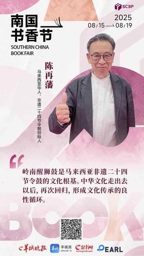 马来西亚第二代华人、非遗二十四节令鼓创始人陈再藩受邀参加本次书香节,他告诉记者,二十四节令鼓这项以岭南醒狮鼓为文化根基的非遗项目正准备申报人类非遗。