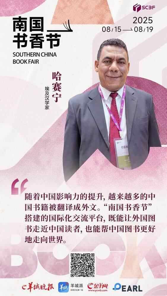 “在阿拉伯世界一提到莫言,大家就会想到我!我很早就听说过南国书香节,也熟悉不少广东、香港作家。”哈赛宁认为,随着中国书籍“走出去”的步伐加快,越来越多作品被翻译成外文,而南国书香节正国际化交流的重要平台。“它不仅能让外国图书走进中国读者的视野,也能帮助中国图书更好地走向世界。”