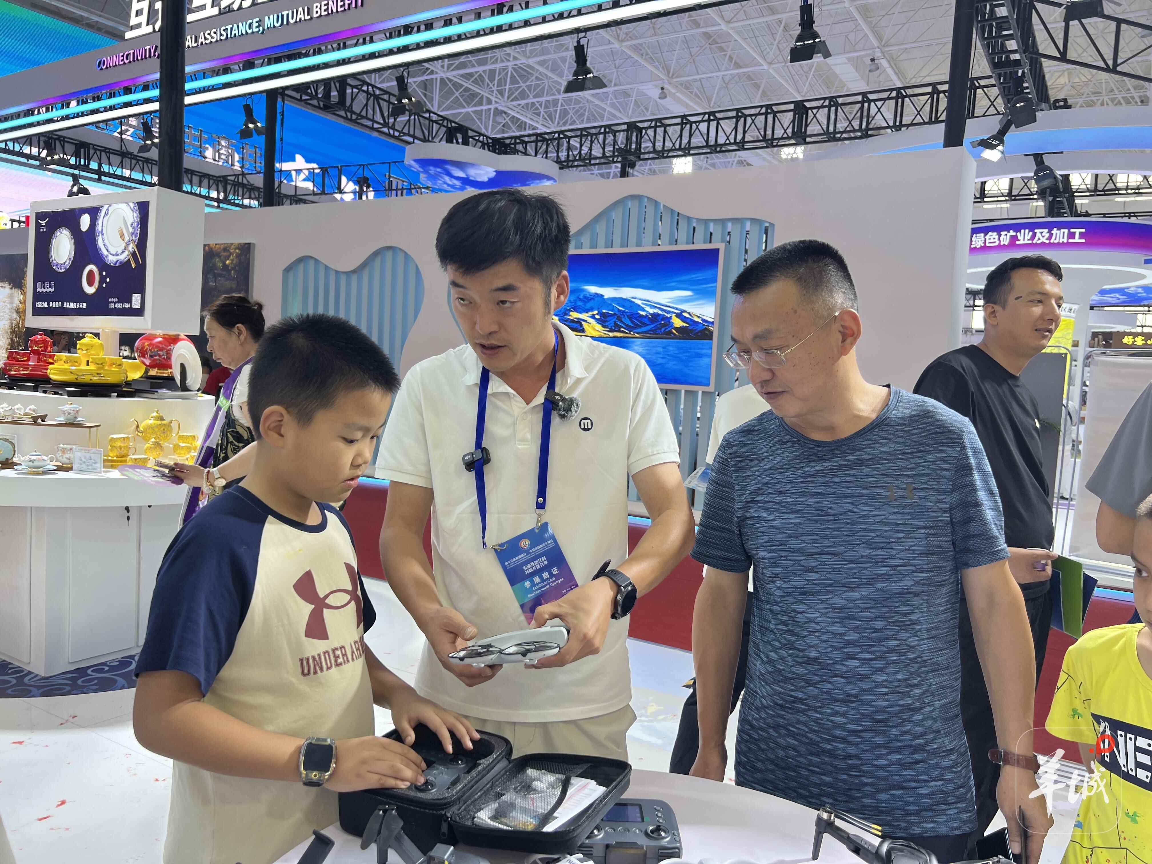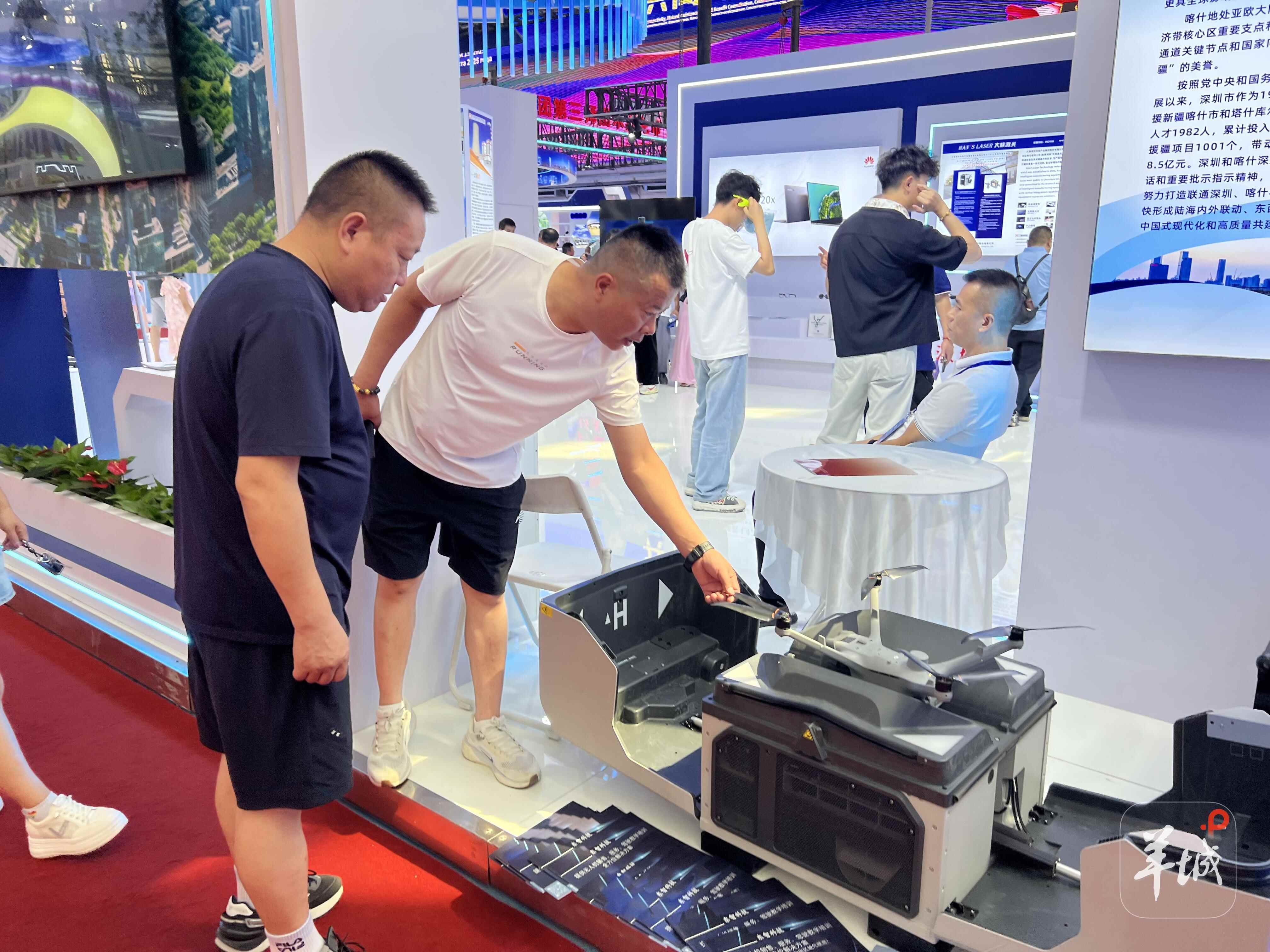 机器狗、无人机、英红茶、陶瓷餐具……当日下午,记者跟随“对口援疆 潮涌天山”主题活动采访团来到喀交会广东展区,现场人头攒动、热闹非凡。本次参会的广东经贸代表团阵容强大,由广州、东莞、中山、梅州、潮州等地市分团及行业商协会、机构、企业近120家单位组成,总人数约190人。其中主要采购商企业包括广州国有资产管理集团有限公司、广州国资智慧城市服务有限公司、华南文体市场、广大商贸城、广州海森生物科技有限公司、广东润泓纺织科技有限公司等。