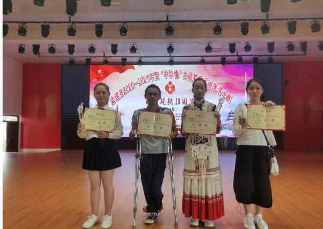 凌崇恩(左二)初二时参加演讲比赛获得三等奖