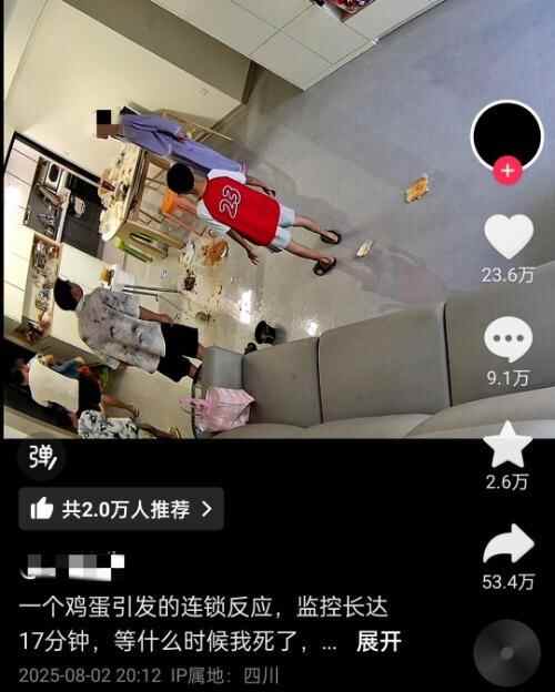 此事源于8月2日一网民通过个人账号在社交平台发布了一段监控视频,画面中,一名男子因鸡蛋被小孩吃掉,自己没吃上而抱怨,并与妻子发生争吵,在此过程中女方情绪崩溃,直接将饭菜掀翻在地。还配文:一个鸡蛋引发的连锁反应,监控长达17分钟,等什么时候我死了,这个监控就是压垮我的最后一根稻草。该网民称,视频中的男女双方正是她和丈夫,吃鸡蛋的两个小孩是她的侄子。