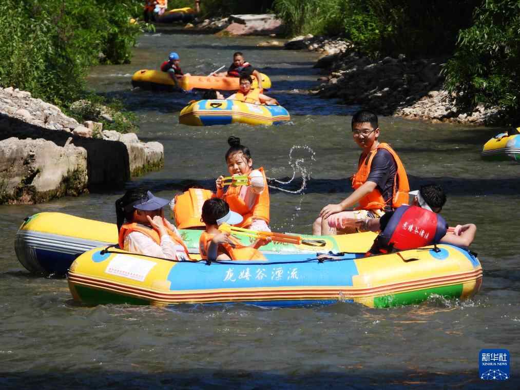 8月13日,游客在四川省达州市渠县临巴镇凉桥村漂流游玩。