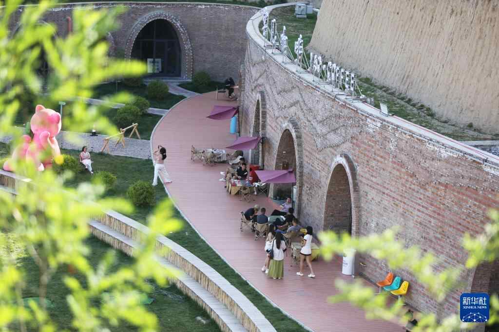 8月13日,人们在甘肃省定西市安定区青岚山乡的一家窑洞咖啡馆休闲。