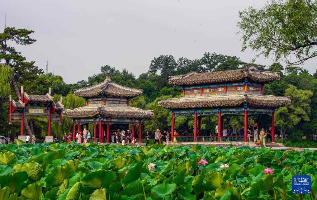 8月12日,游客在河北省承德市避暑山庄景区游玩观景。