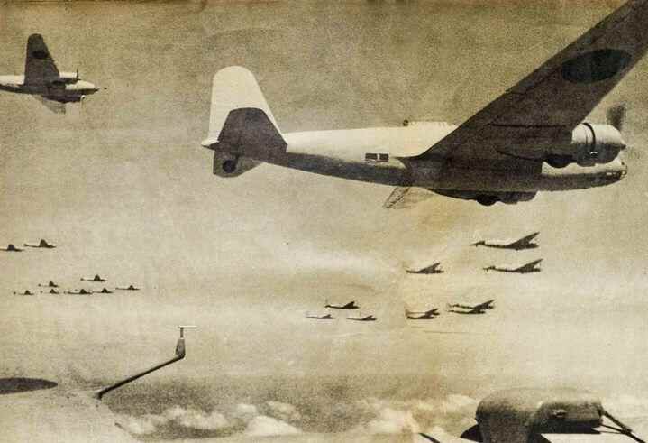 这是侵华日军大编队轰炸机群飞向重庆,准备进行轰炸(资料照片,翻拍)。新华社发