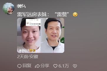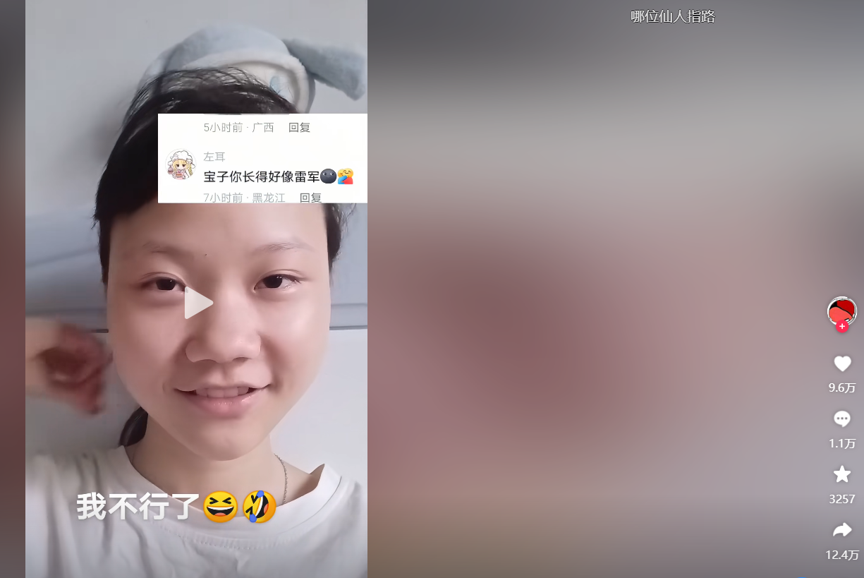 8月12日,女孩因长相酷似雷军在网络引起关注,截至目前视频点赞数已超9万。