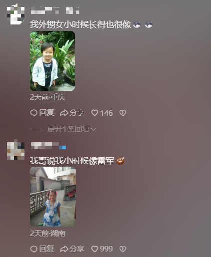 还有网友晒图表示自己、亲戚长得也很像。