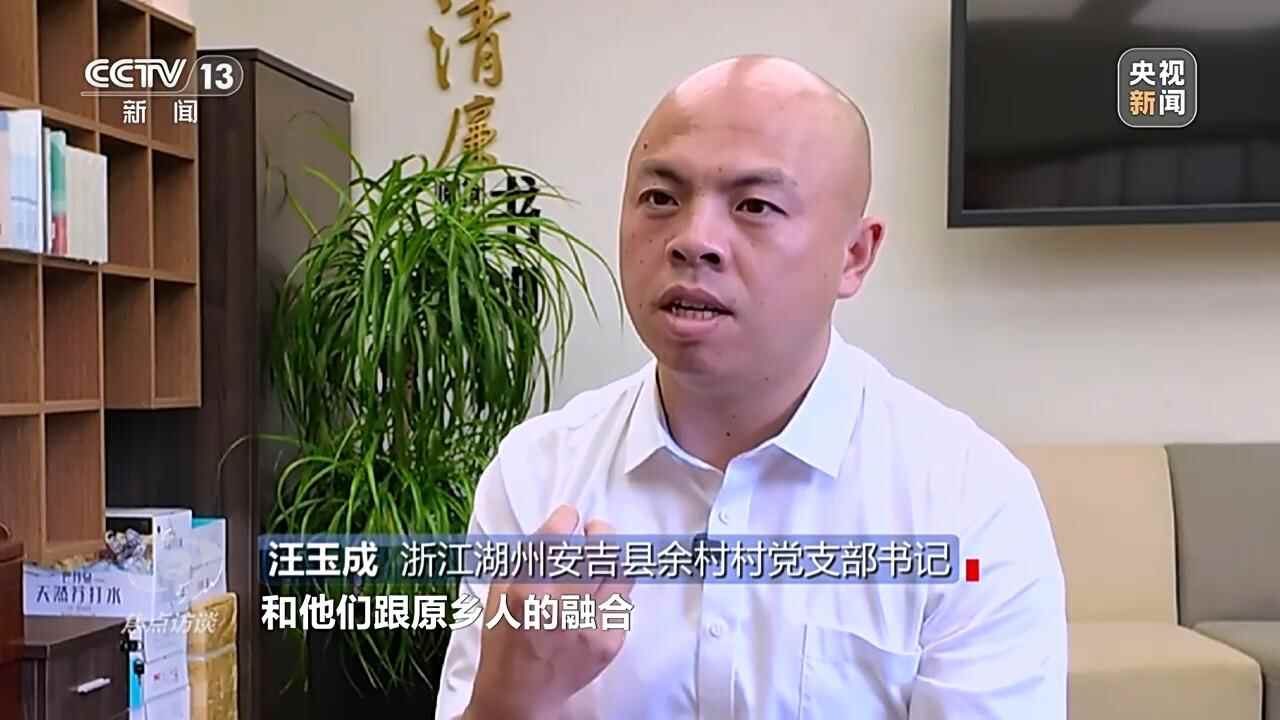 浙江湖州安吉县余村村党支部书记 汪玉成:我们发出余村全球合伙人招募青年入乡之后,他们的创意创新和他们跟原乡人的融合,再加上把我们一些沉睡资源唤醒,给村庄焕发出了新的活力和生命力。
